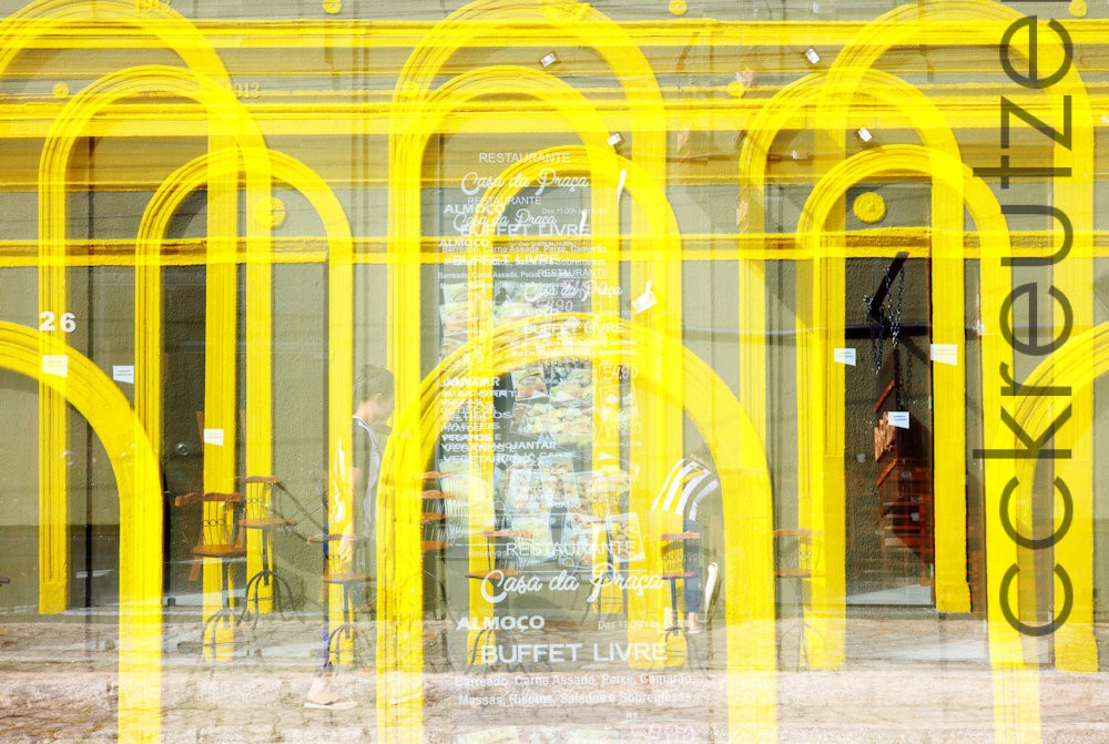 Die ersten Bilder dieser Serie sind während meines Brasiliensaufenthalts im Frühjahr 2024 und sind meine Interpretation der brasilianischen Kolonialarchitektur, die bestimmt wurde durch die portugiesischen Kolonialisierung des Landes. Die Betonung der Bögen und Rechtecke der Fassadenöffnungen erzeugen eine Leichtigkeit, die durch den Bau an sich nicht gegeben sind, und zusammen mit der farbenfrohen Fassadenbemalung spiegeln sie die Leichtigkeit der brasilianischen Kultur wieder. Durch die Mehrfachbelichtung konnte ich diese typische brasilianische Eigenschaft, auch die schwierigsten Lebenssituationen mit Leichtigkeit und einem Lächeln – nein, mit einem Lachen – zu entgegnen, ausf Bild bannen.